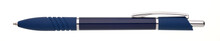Tmavě modrá gelová plastová propiska s pochromovanými doplňky s gelovou velkoobsahovou náplní.