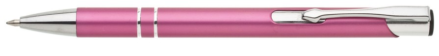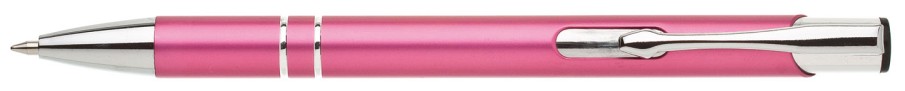ALBA je velmi oblíbená hliníková reklamní tužka. Matné růžové tělo se dvěma stříbrnými proužky a chromovými doplňky.