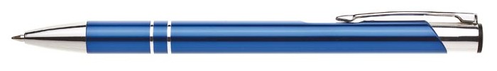 ORIN je velmi oblíbená hliníková reklamní tužka. Lesklé, tmavě modré tělo se dvěma stříbrnými proužky a chromovými doplňky.