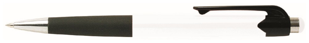 Kuličkové pero GARNA v bílé barvě, úchopová část je černá a pogumovaná. Tužka má pochromované doplňky.