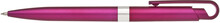 Plastové, kuličkové pero FIROL má růžové, metalické tělo se stříbrným rýhovaným proužkem uprostřed. Náplň velkoobsahová, modře píšící. Kolekce DESIGN.