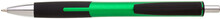 Plastová propiska CHANEL zelená s černým, pogumovaným gripem a širokým plastovým, černým klipem vhodný pro potisk. Cvakátko a špička je pochromovaná. Náplň X20 -110 mm.