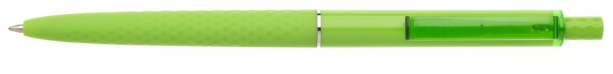Tenká světle zelená propiska má 3D soft povrch ve spodní části, horní část propisky je hladká, vhodná pro umístění loga, Obě části odděluje tenký stříbrný kroužek. Klip je průhledný v barvě propisky. Kolekce DESIGN. Náplň X20 modře píšící.