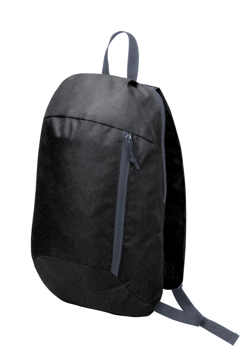 600D polyesterový batoh s vypolstrovanými zády, nastavitelnými popruhy a se zipem na přední kapse.