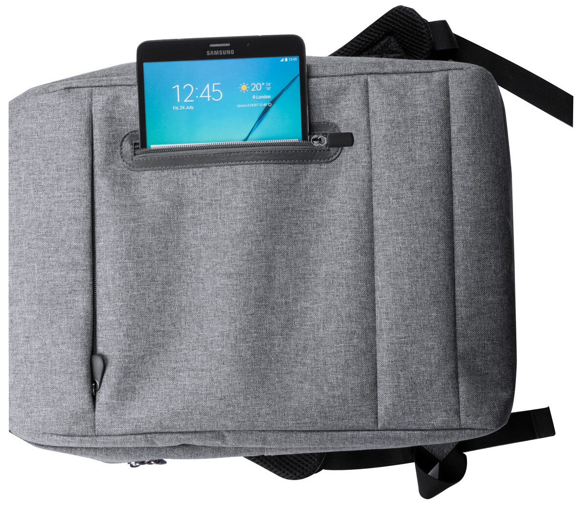 Batoh s mnoha přihrádkami na zip, vypolstrovanými popruhy a přihrádkou na laptop (15"). 600D polyester.