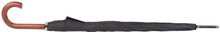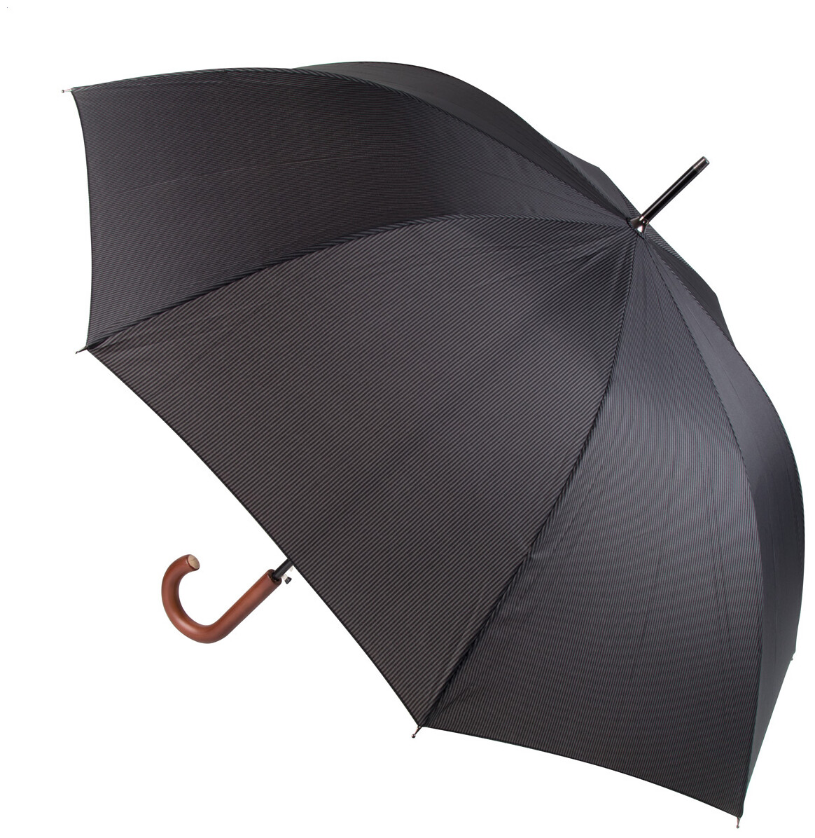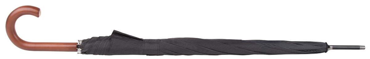 Automatický, větruodolný deštník s černými a šedými proužky a 8 panely, dřevěná rukojeť, kovová tyčka a konstrukce ze skelných vláken. 190 T pongee. V obalu s logem André Phillipe.
