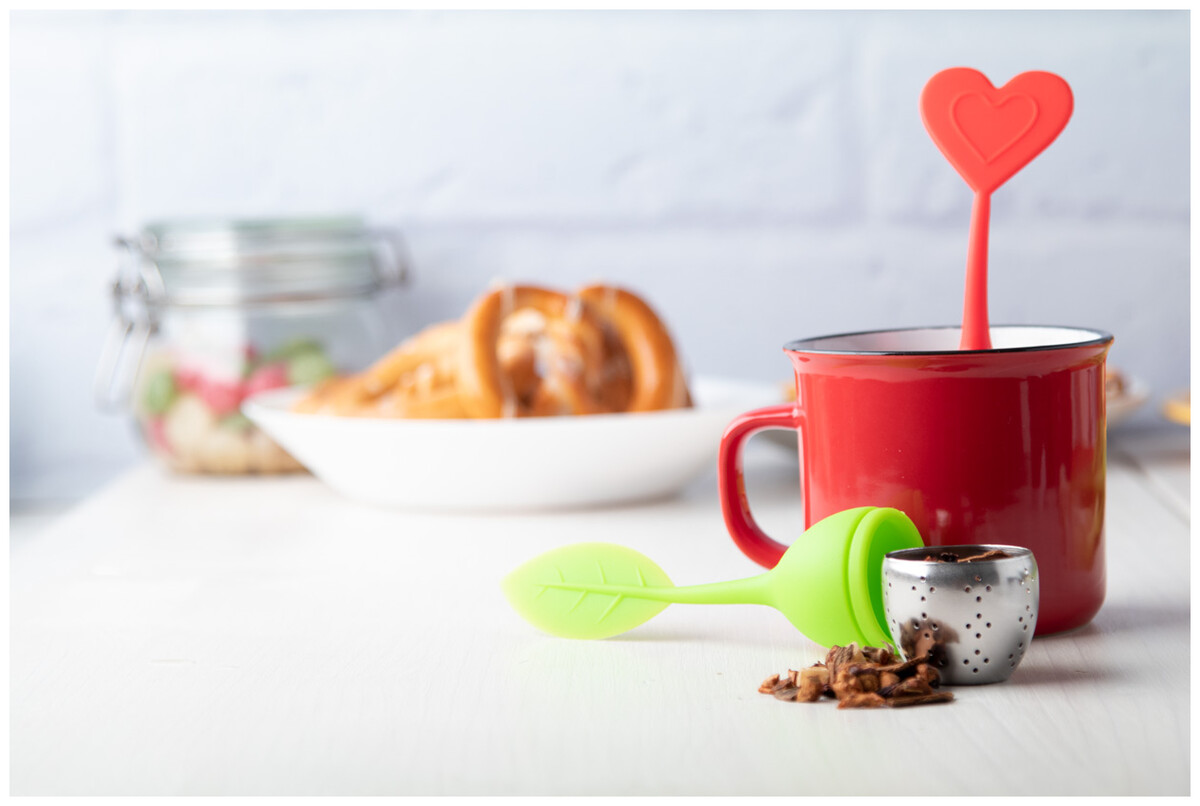 Čajítko s dekorací, silikon/nerez ocel.