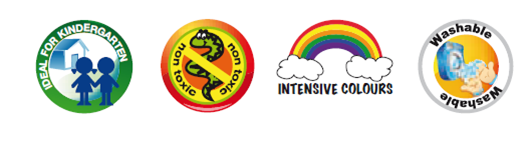 Prstové barvy v 7 intenzivních barvách, s vysokou kryvostí barev. Praktické kalíšky o objemu 30 ml. Barvy nestékají, jsou snadno míchatelné. Ideální pro malé děti a předškoláky. Stimulují kreativitu a podporují rozvoj jemné motoriky. Snadno vypratelné vodou a mýdlem. Na bázi vody, netoxické - certifikace EN71.