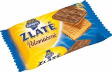 Opavia Zlaté Polomáčené mléčné jsou tradiční sušenky z jedné strany polité lahodnou mléčnou čokoládou. Balení 100 g.