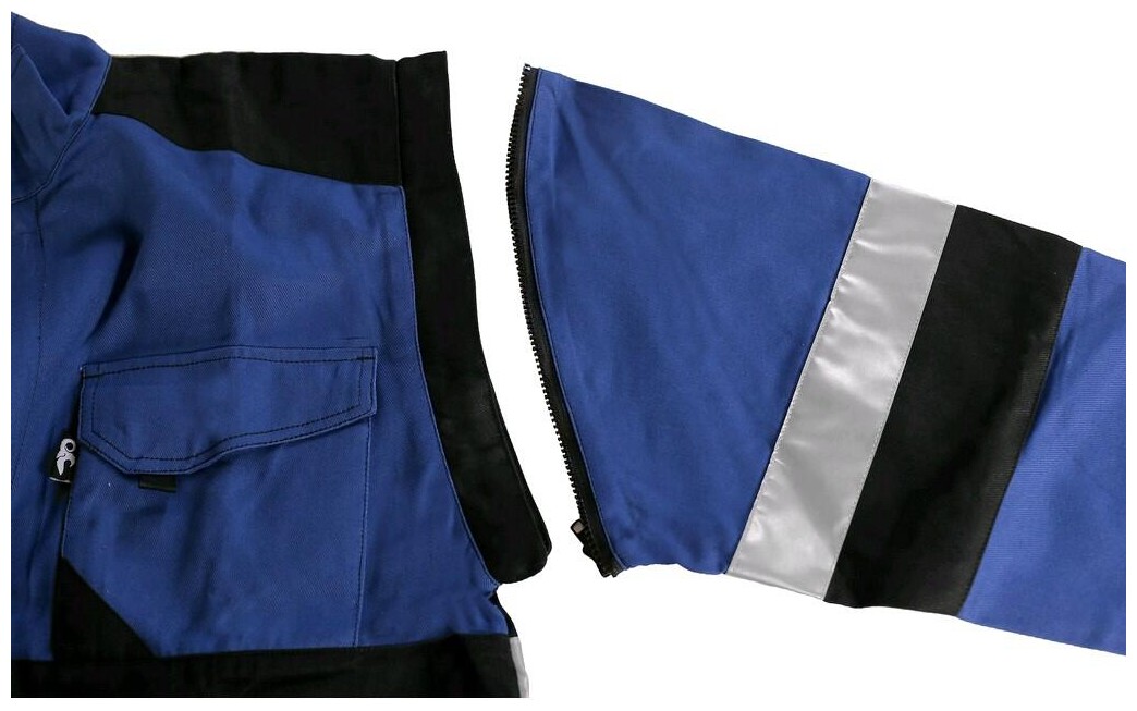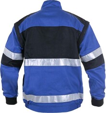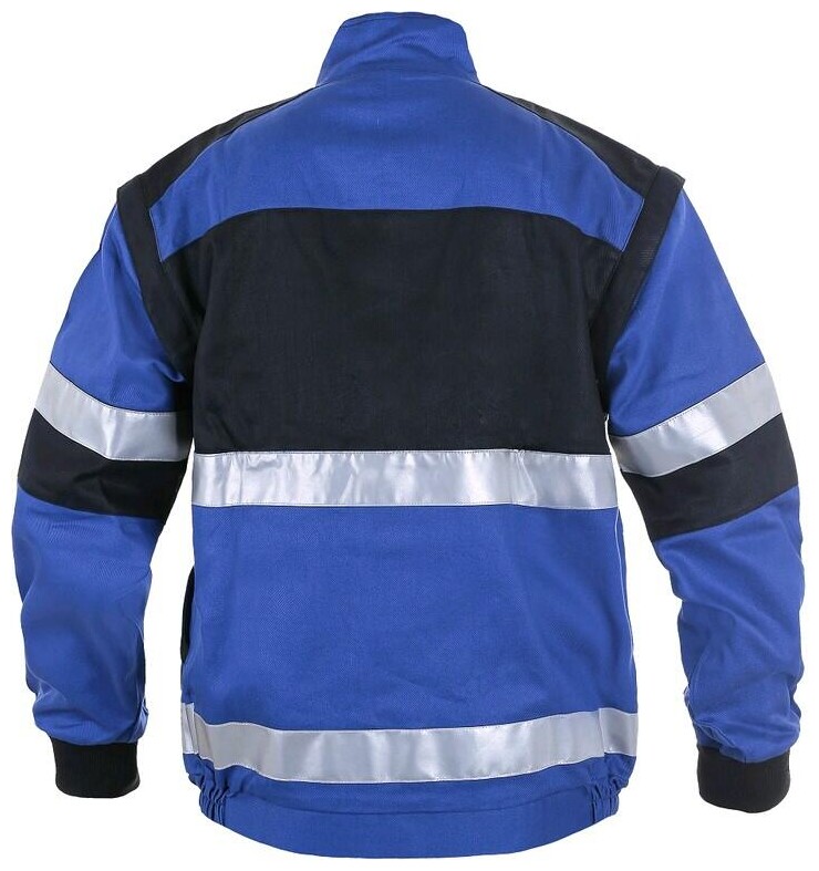 Pánská montérková blůza, odepínací rukávy s pružnou manžetou, kryté zapínání na zip a suché zipy, náprsní kapsy s klopami, skrytá náprsní kapsa na zip, jednoduché boční kapsy, pas na bocích do gumy, reflexní pruhy.