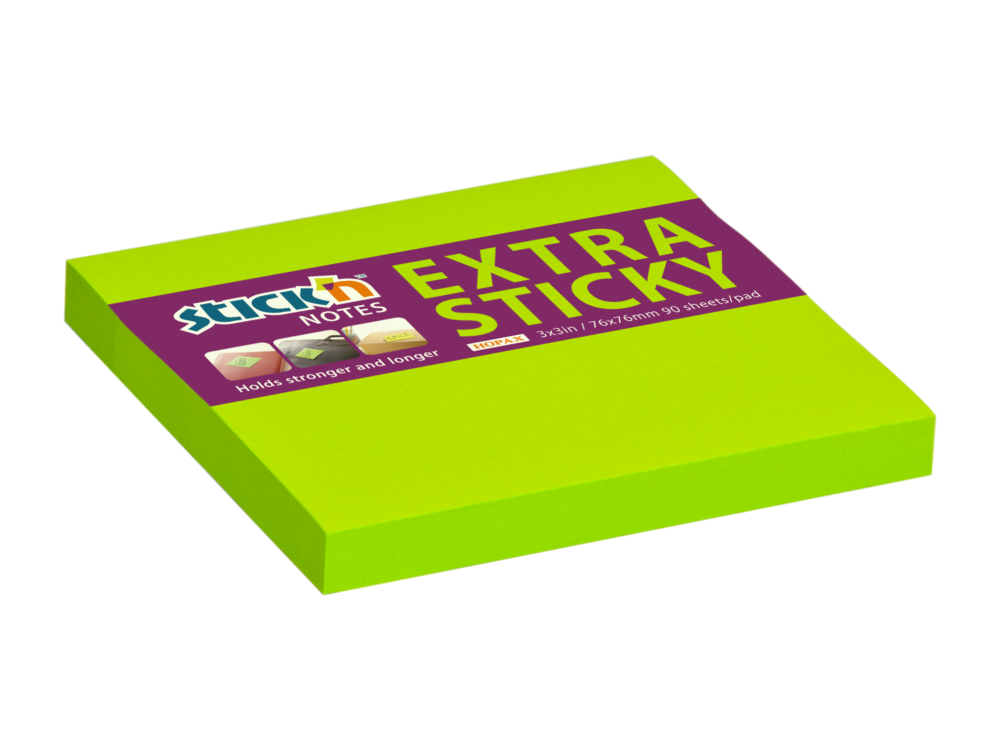 Samolepicí bloček Stick'n by Hopax EXTRA STICKY, 76 x 76 mm, neon zelený, 90 lístků
