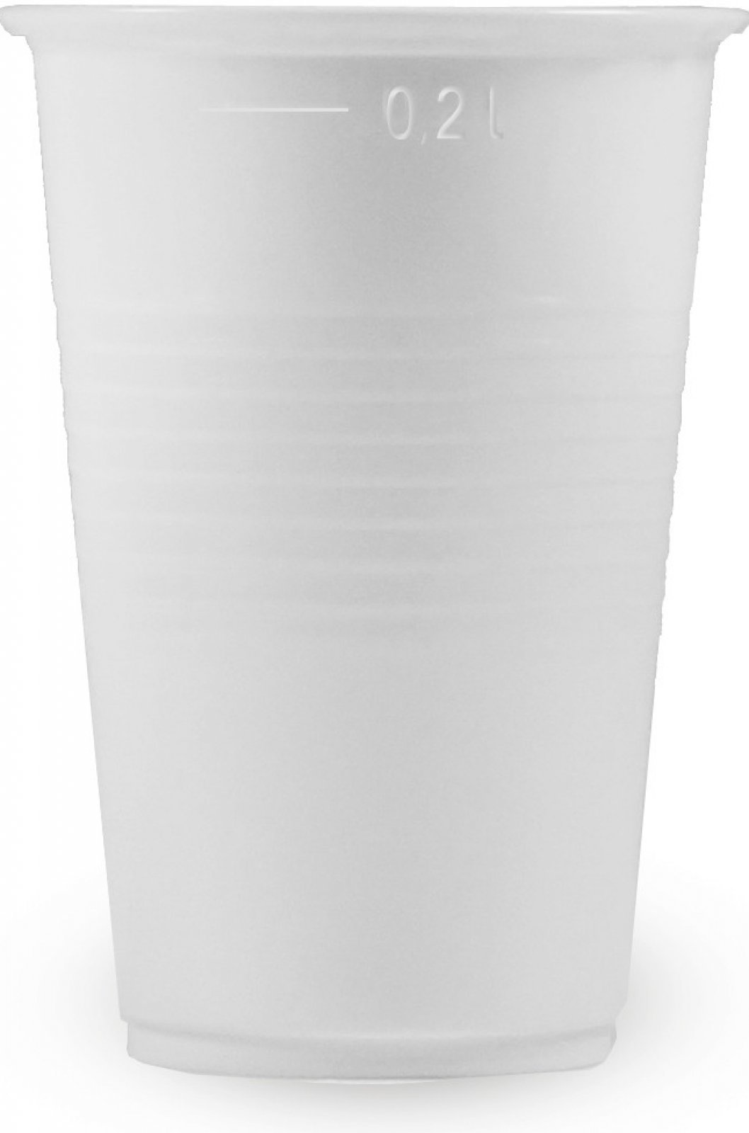 Kelímky na nápoje, plastové, barva: bílá, objem: 0,2 l, 100 ks v balení.