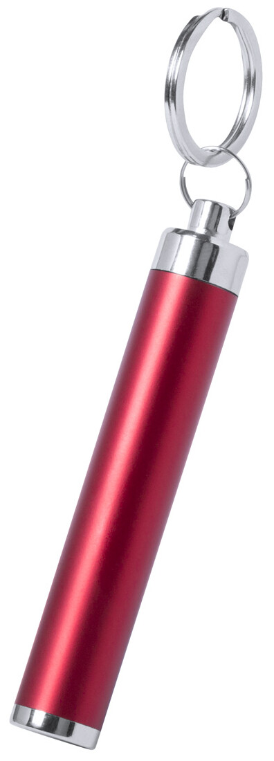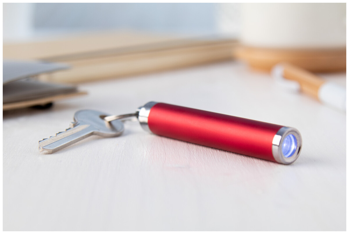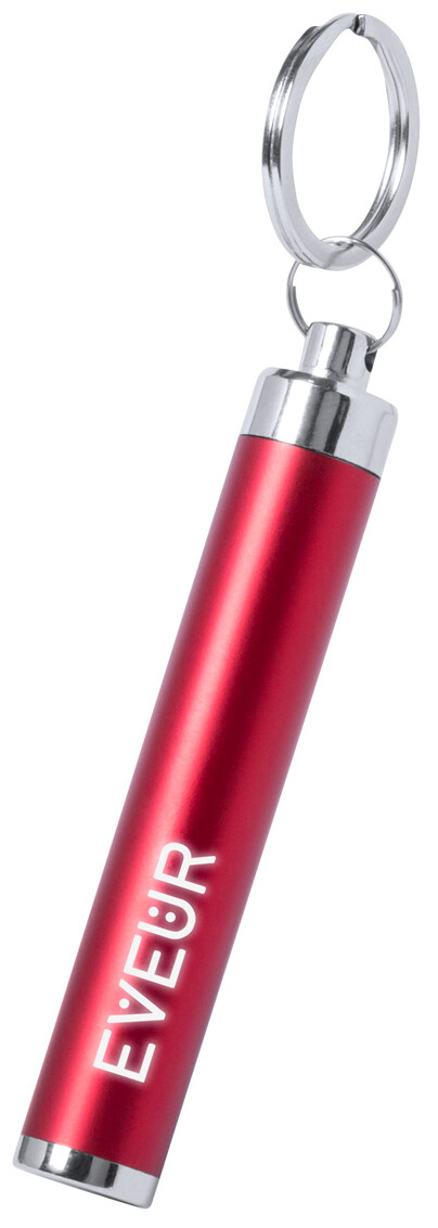 Plastová baterka s 1 LED světlem a kovovým kroužkem na klíče. Vygravírovaná loga na těle baterky svítí. Vč. knoflíkových baterií.