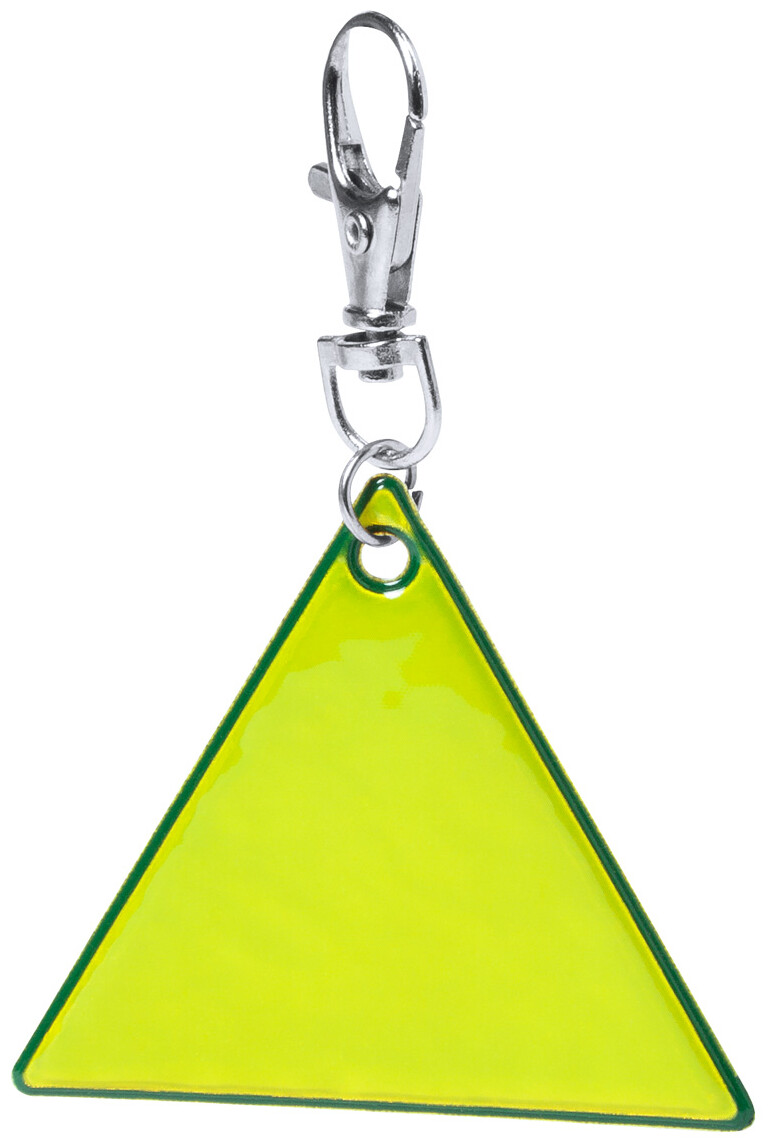 Trojúhelníkový reflexní přívěšek na klíče s karabinkou, PVC. Pouze pro propagační účely, se produkt nekvalifikuje jako osobní ochranný prostředek.