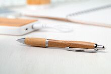 Bambusové kuličkové pero s kovovým klipem a modrou náplní.