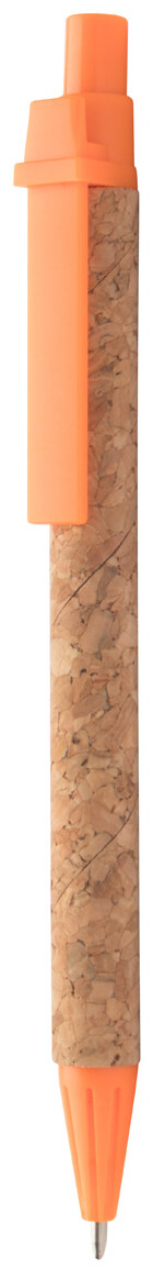 Kuličkové pero z recyklovaného papíru s korkovým povrchem a plastovými částmi, s modrou náplní.