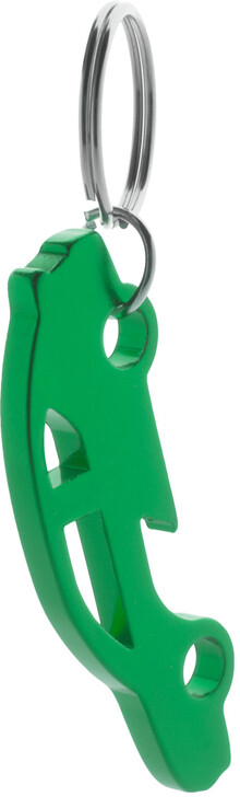 Hliníkový přívěšek na klíče ve tvaru auta s otvírákem na láhve.