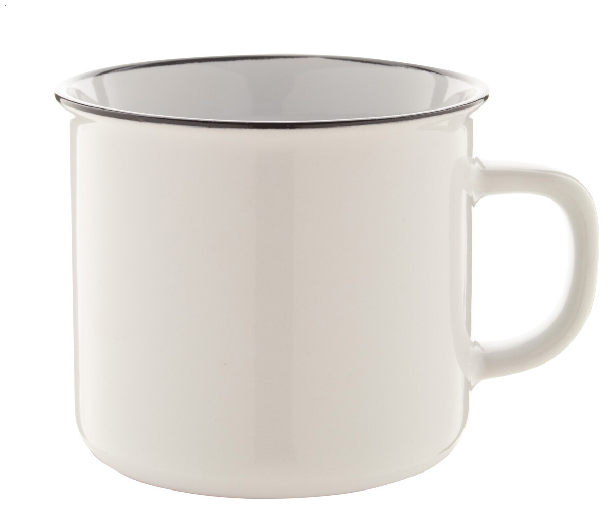 Retro barevný keramický hrnek s černým okrajem, bílým vnitřkem a barvou z venku, 300 ml, v dárkové krabičce.
