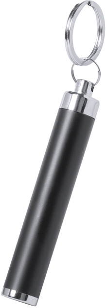 Plastová baterka s 1 LED světlem a kovovým kroužkem na klíče. Vygravírovaná loga na těle baterky svítí. Vč. knoflíkových baterií.