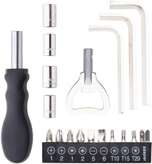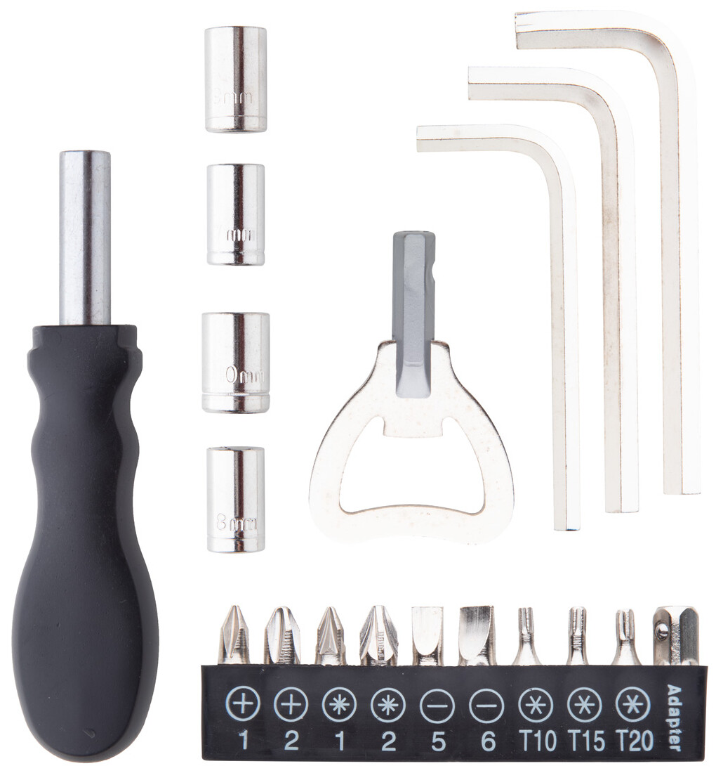 Sada nářadí, 19 dílů, v polyesterovém obalu s karabinkou.