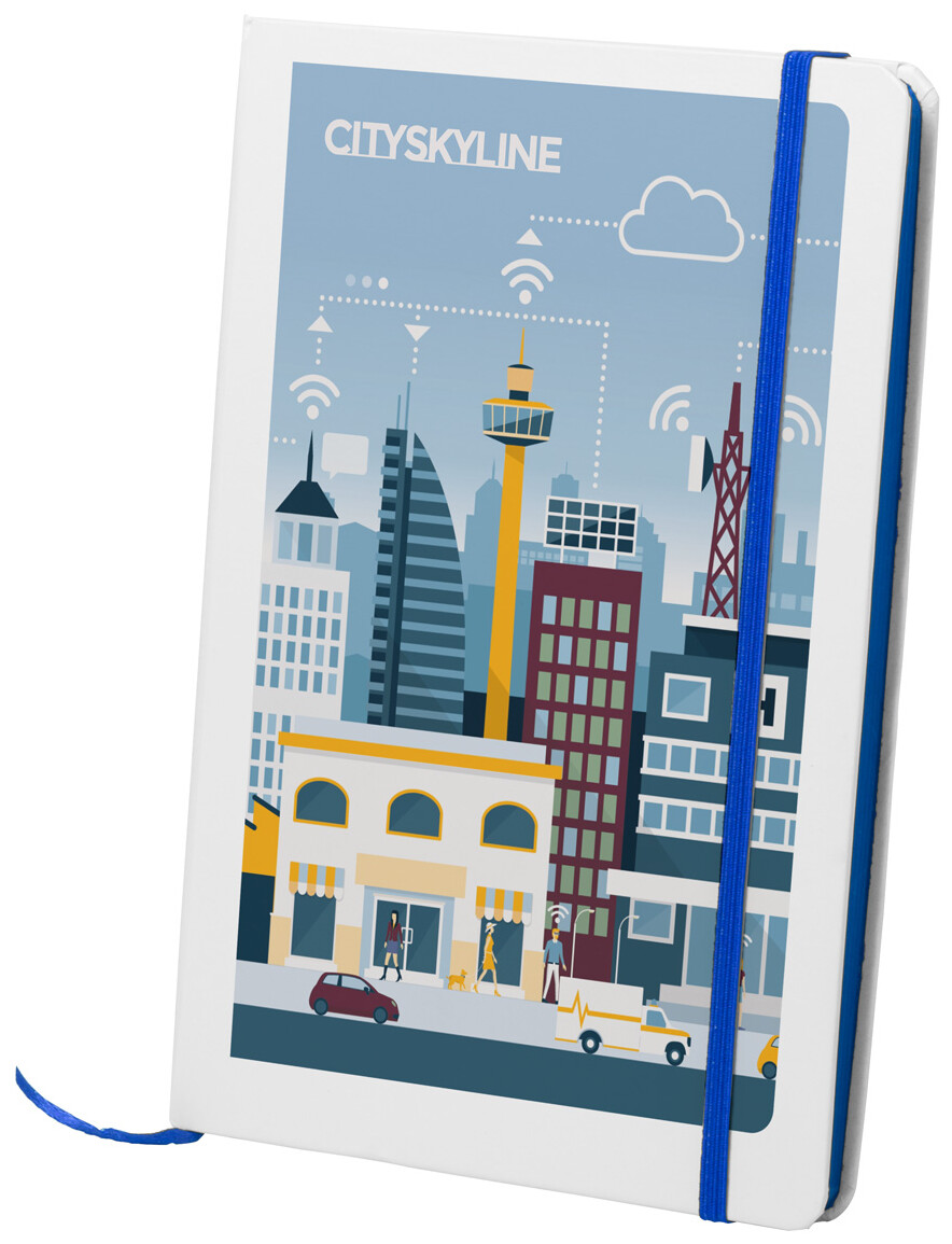 Blok se 100 čistými listy v papírových deskách a barevnou gumičkou, A5.