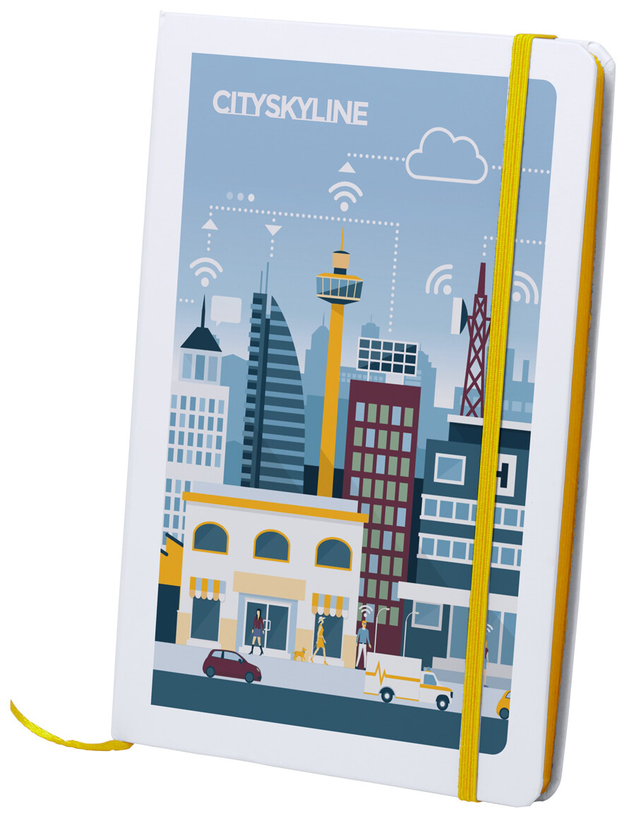 Blok se 100 čistými listy v papírových deskách a barevnou gumičkou, A5.