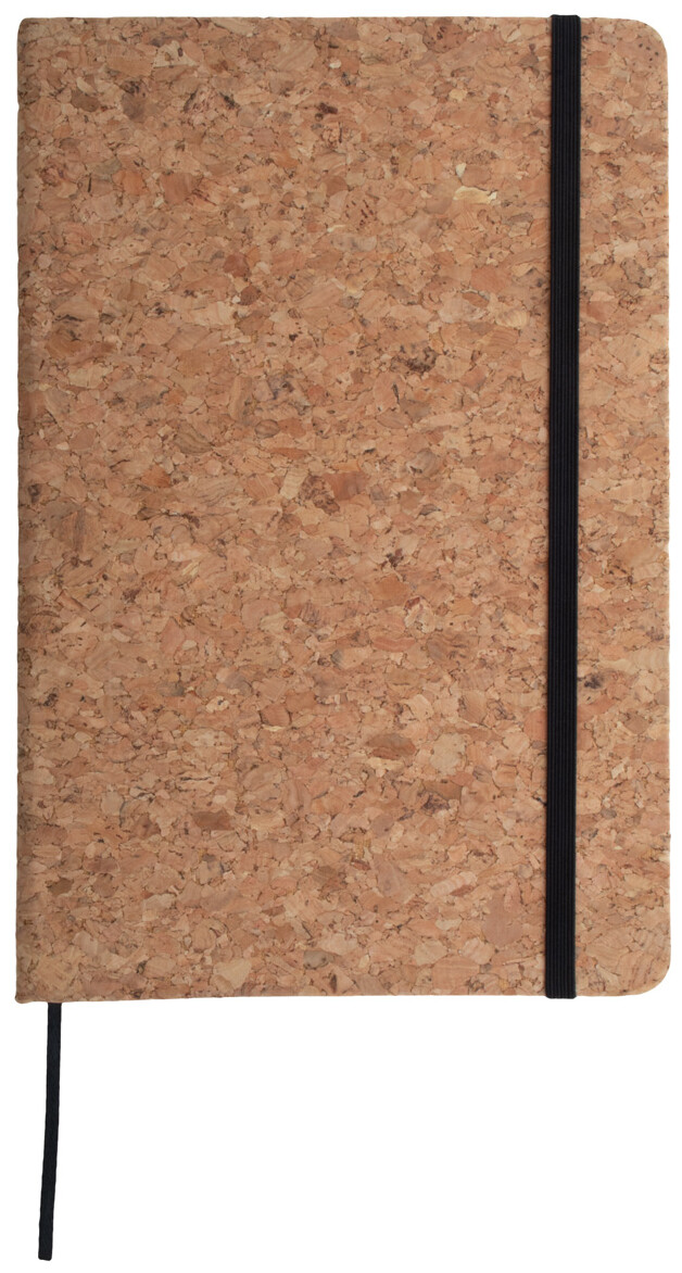 Blok A5 s deskami z přírodního korku s 80 čistými listy a gumičkou.