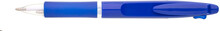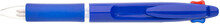 Kuličkové pero BARNA - 2 v 1, tzn.,že píše červeně a modře, vyrobeno z modrého plastu s gumovým gripem v barvě tužky.