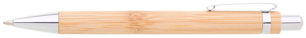 Bambusové tělo propisky TURAL je doplněno stříbrnými doplňky a kovovým rovným klipem.
