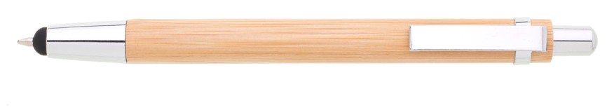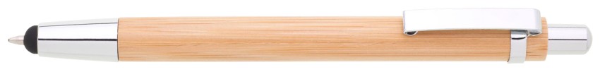 Bambusové tělo propisky TURAL Touch je doplněno stříbrnými doplňky, špičkou s touch koncem a kovovým rovným klipem.