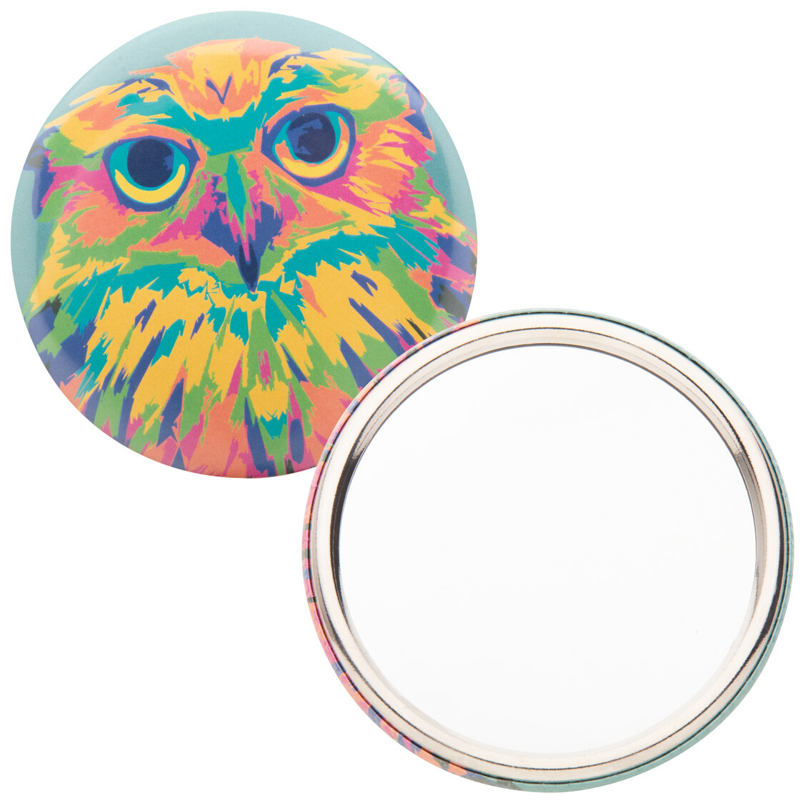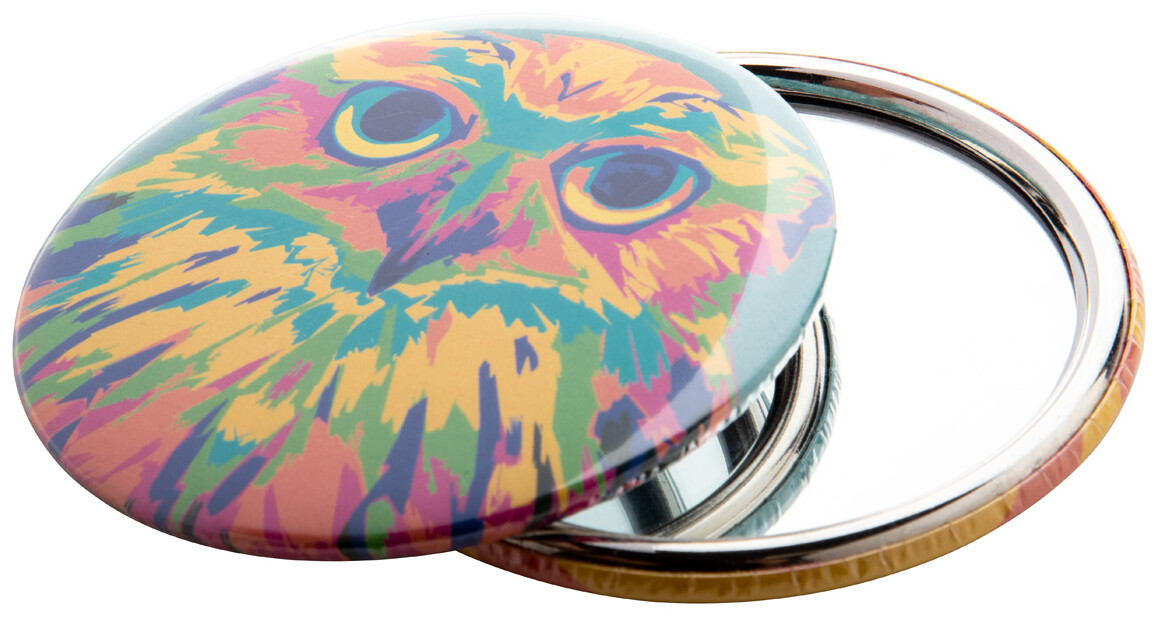 Kapesní zrcátko s plnobarevným potištěným vloženým papírem na míru. Cena zahrnuje digitální tisk. Minimální objednávka: 100 ks.