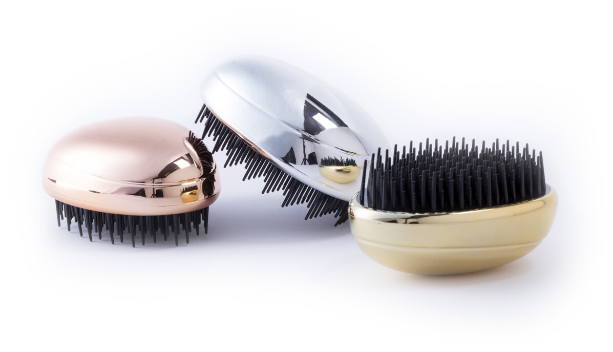 Kartáč na vlasy proti zacuchání v metalické barvě.