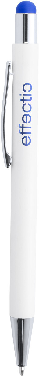 Hliníkové kuličkové a dotykové pero s pogumovanou úpravou a speciálním povrchem pro zrcadlový laser v barvě stylusu, s modrou náplní.