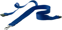 Polyesterový lanyard s kovovou karabinkou a bezpečnostní přezkou.