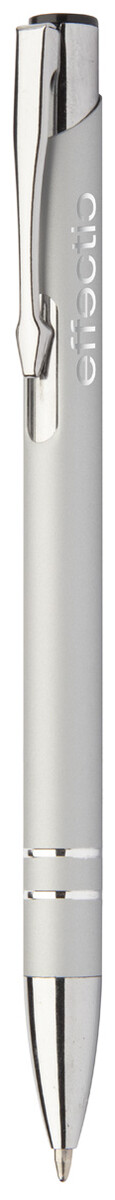 Hliníkové kuličkové pero s pogumovaným povrchem a modrou náplní. Speciální povrch pro laser stříbrného loga.