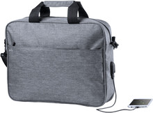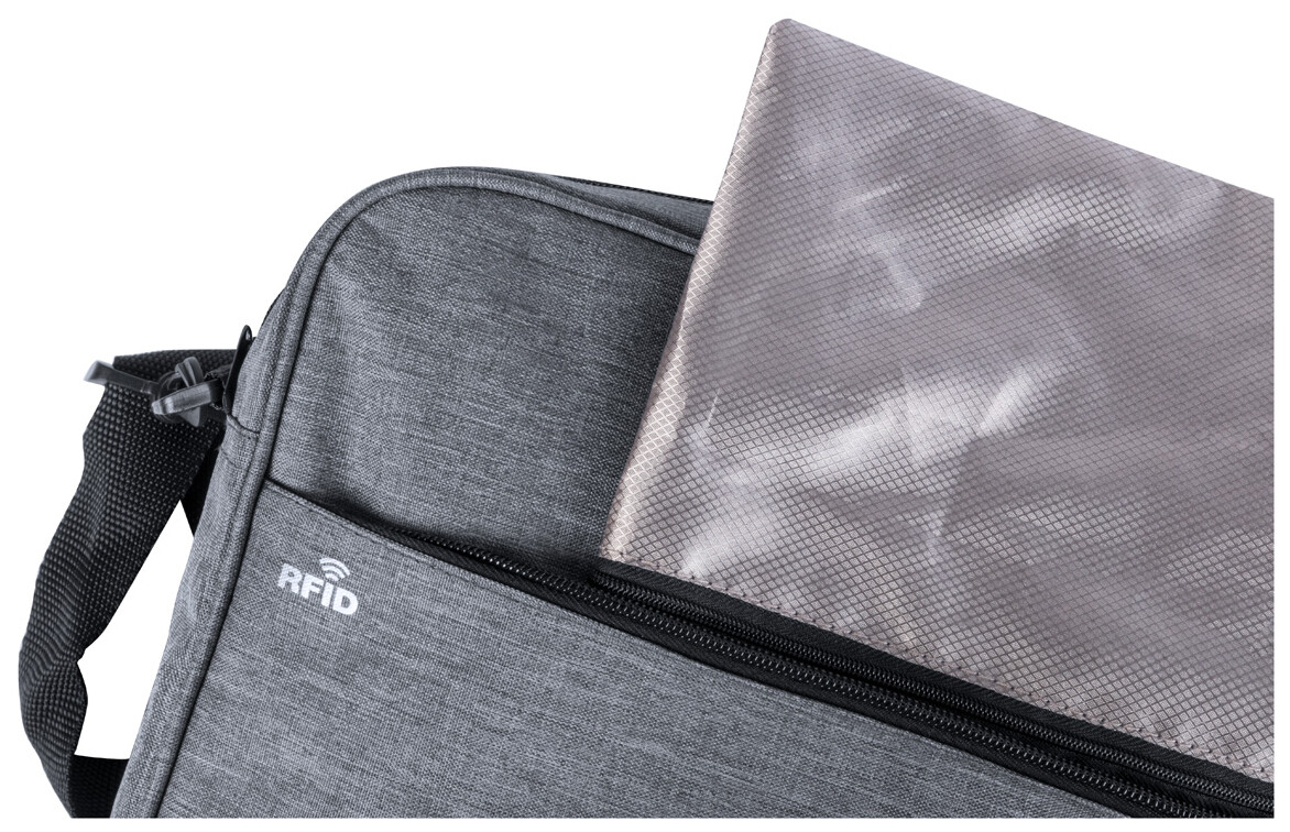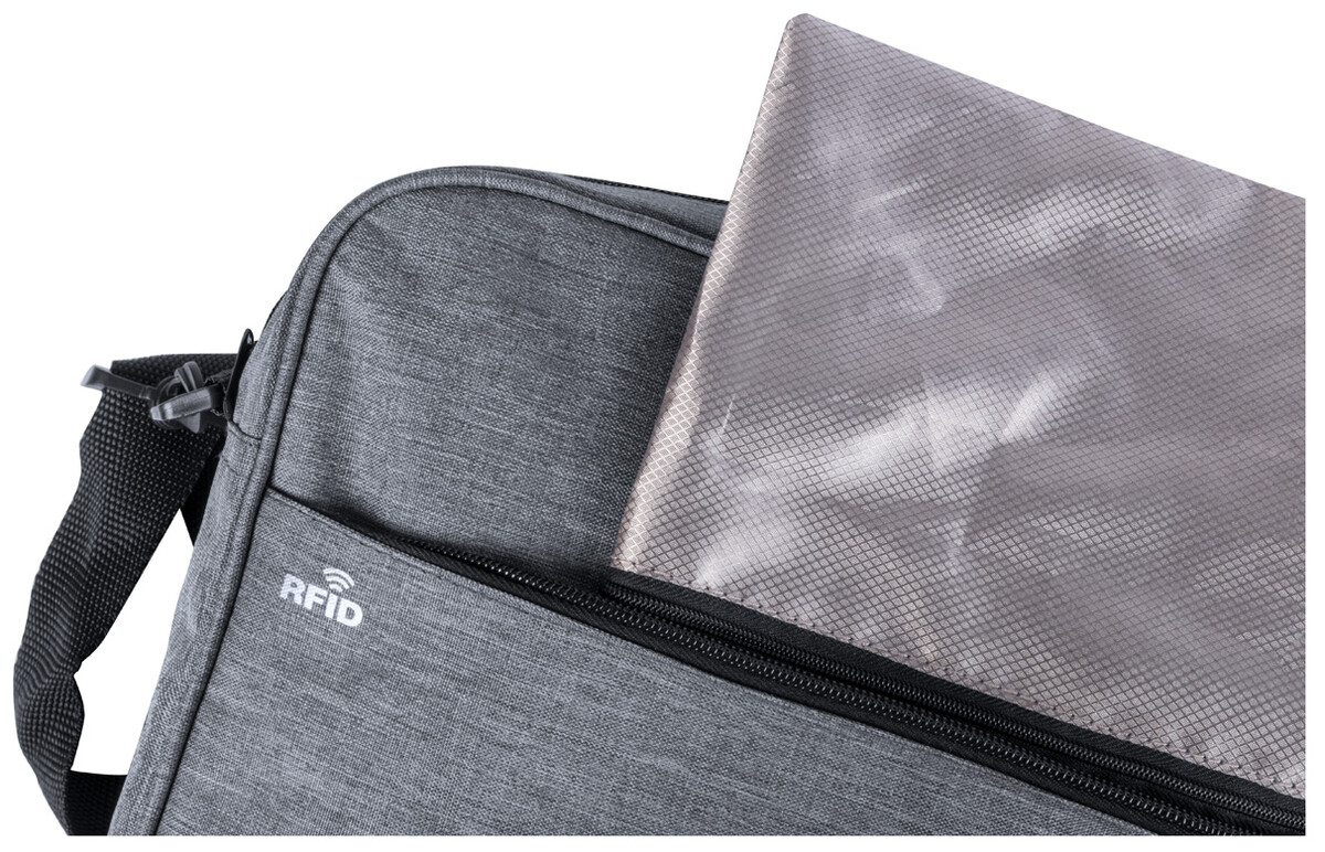 Taška na dokumenty s RFID ochranou s vypolstrovaným oddílem na laptop a tablet (15" & 10"), vypolstrovanými zády a ramenními popruhy. S vestavěným USB připojením pro power banku. 300D polyester.