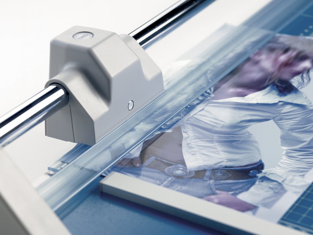 Profesionální kotoučová a velkoformátová řezačka pro každodenní použití. Samo-ostřící horní a spodní nůž z tvrzené oceli pro dlouhodobě přesný řez. Určeno pro více druhů materiálů: papír, karton, textil, fotografie a fólie. Stabilní kovový stůl s neklouzavými pryžovými podložkami pro komfortní provoz. Uzavřená hlava nože zajišťuje vysokou míru bezpečnosti. Natištěné úhly, rastr a DIN formáty usnadňují přesné vyrovnání řezaného materiálu. Příložník s dělením v mm a nastavitelným zadním dorazem pro fixaci řezaného materiálu a přesný řez 90°. Automatický přítlak v místě řezu pro rychlé zafixování řezaného materiálu. Pro úsporu místa možnost montáže na stěnu. Lze dokoupit: náhradní řezací hlava. Vyrobeno v ČR. Váha: 4,6 kg. Rozměr stolu: 915 x 360 mm. Délka řezu: 720 mm. Výška řezu: 2 mm. DIN: A2. Řezný výkon: 20 listů papíru (80 g/m2).