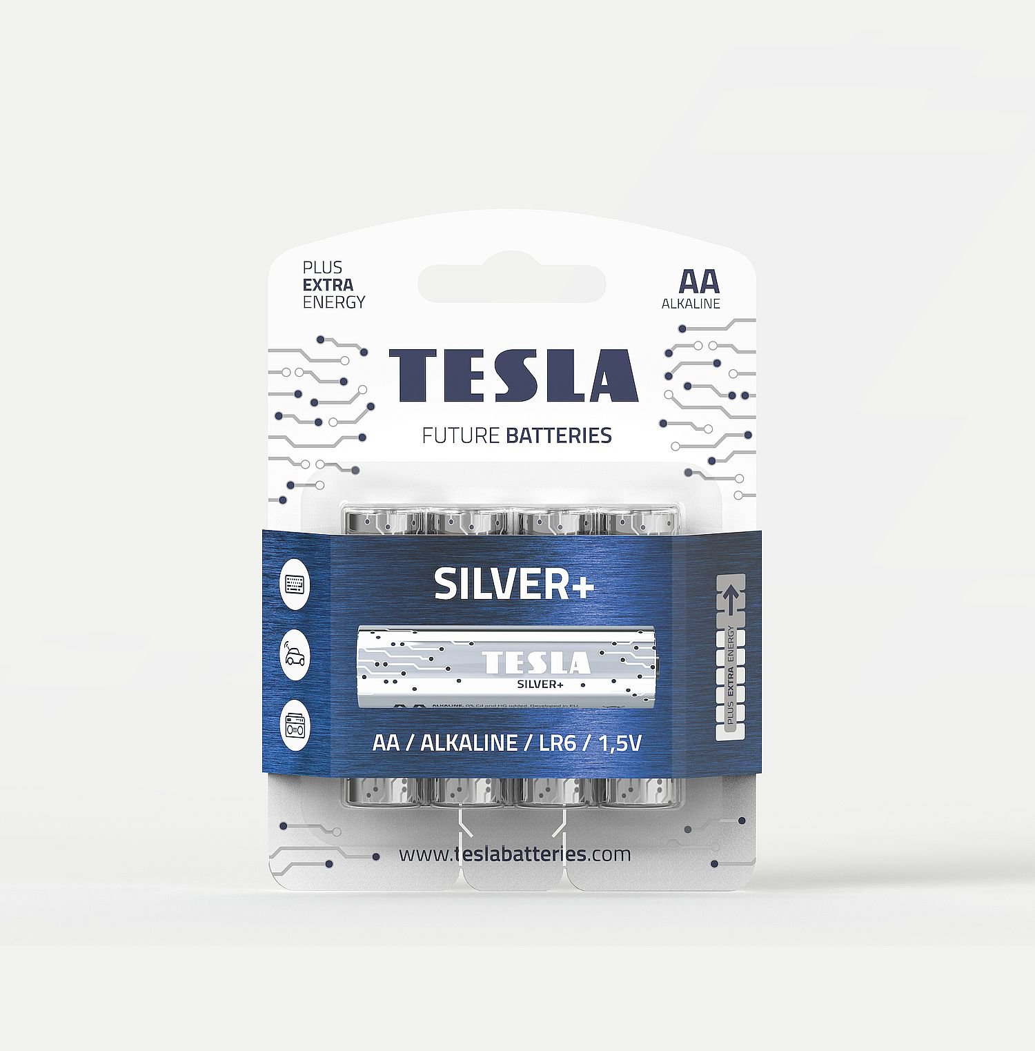 Řada baterií TESLA SILVER+ zahrnuje alkalické baterie typu AA určené pro přístroje s dlouhodobým vysokým odběrem elektrické energie. Představuje ideální volbu pro elektronické hračky. Tuto řadu specifikuje dlouhotrvající výdrž baterie při stálém energetickém zatížení.