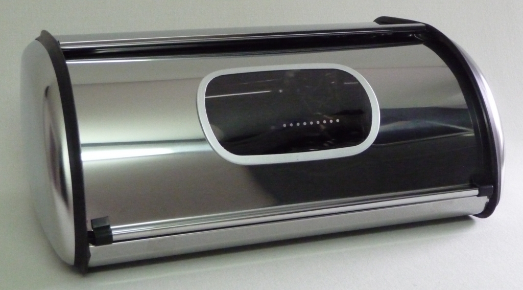 Chlebník nerezový malý, rozměr: 35 x 23 x 14 cm.