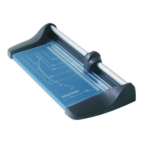 Kotoučová řezačka s broušeným kolečkem na profilované tyči s délkou řezu 330 mm. Pracovní stůl je vybaven natištěnými měřítky a úhly. Nechybí přítlačná lišta z průhledného plastu. Řezačka díky své konstrukci uřízne bez problémů až 10 listů papíru.