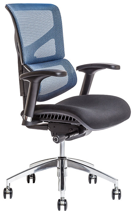 Záda židle čalouněná samonosnou síťovinou zajišťují celodenní větrání zad
