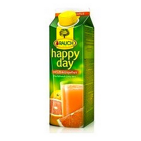 Džus RAUCH Happy day, 100% šťáva z růžového grapefruitu s dužinou vyrobená z koncentrátu, objem: 1 l, prodejní balení 12 ks.