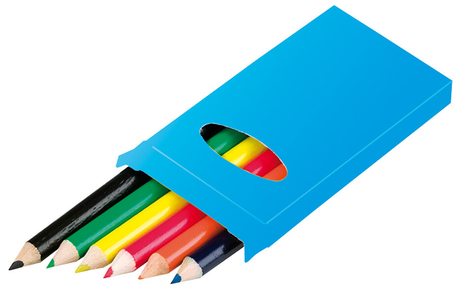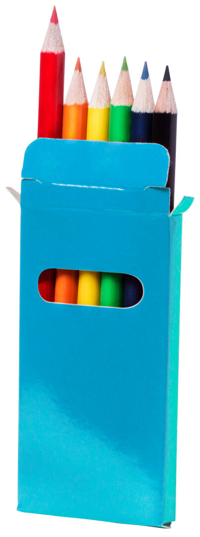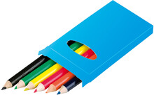 Dřevěné pastelky (6 ks) v barevné papírové krabičce.
