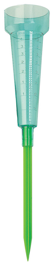 Plastový srážkoměr s průhledným tělem a odolným upevňovacím bodcem. Měřítko: 1 řádek=1l/m2. Kapacita: 40 l/m2.