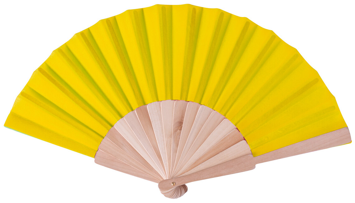 Ruční vějíř z polybavlny s dřevěnými žebry.