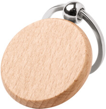 Přívěsek na klíče z přírodního bukového dřeva s kovovým kroužkem.