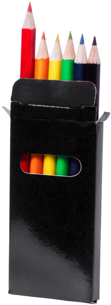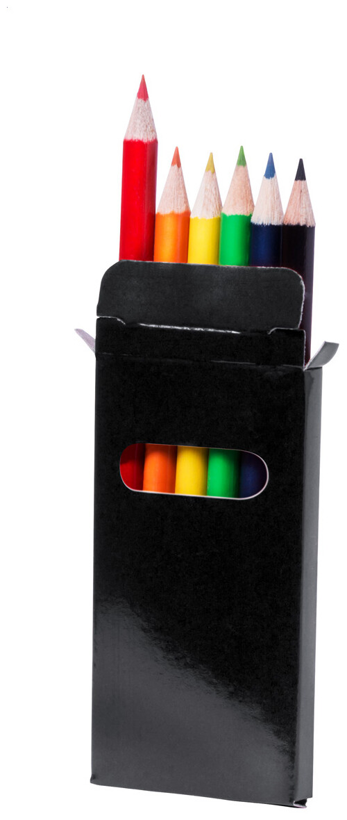 Dřevěné pastelky (6 ks) v barevné papírové krabičce.