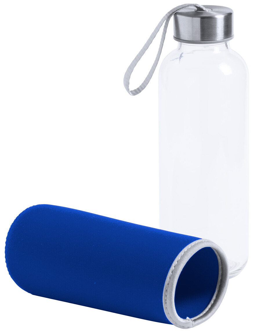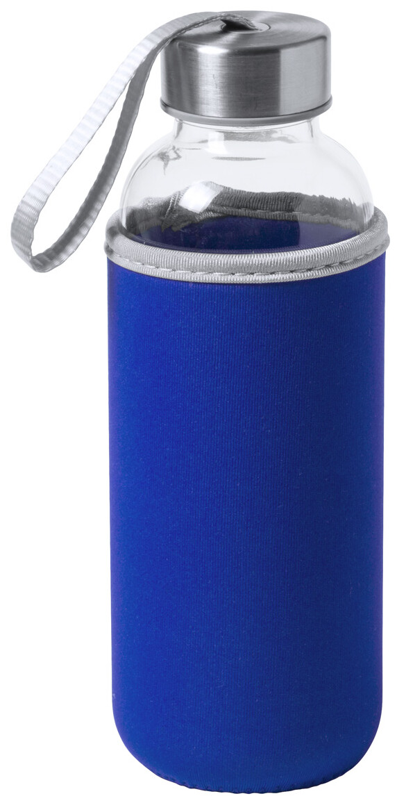 Skleněná láhev s popruhem na uzávěru a barevným neoprenovým krytem. 420 ml. Nevhodné pro sycené nápoje.