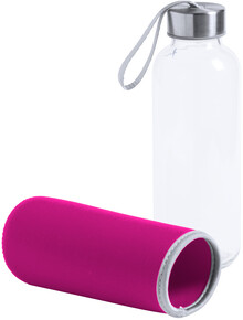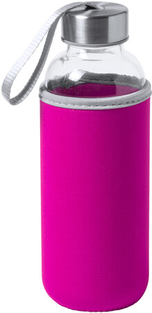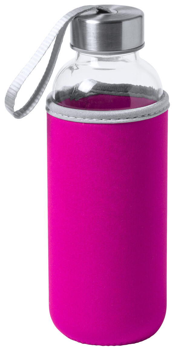 Skleněná láhev s popruhem na uzávěru a barevným neoprenovým krytem. 420 ml. Nevhodné pro sycené nápoje.