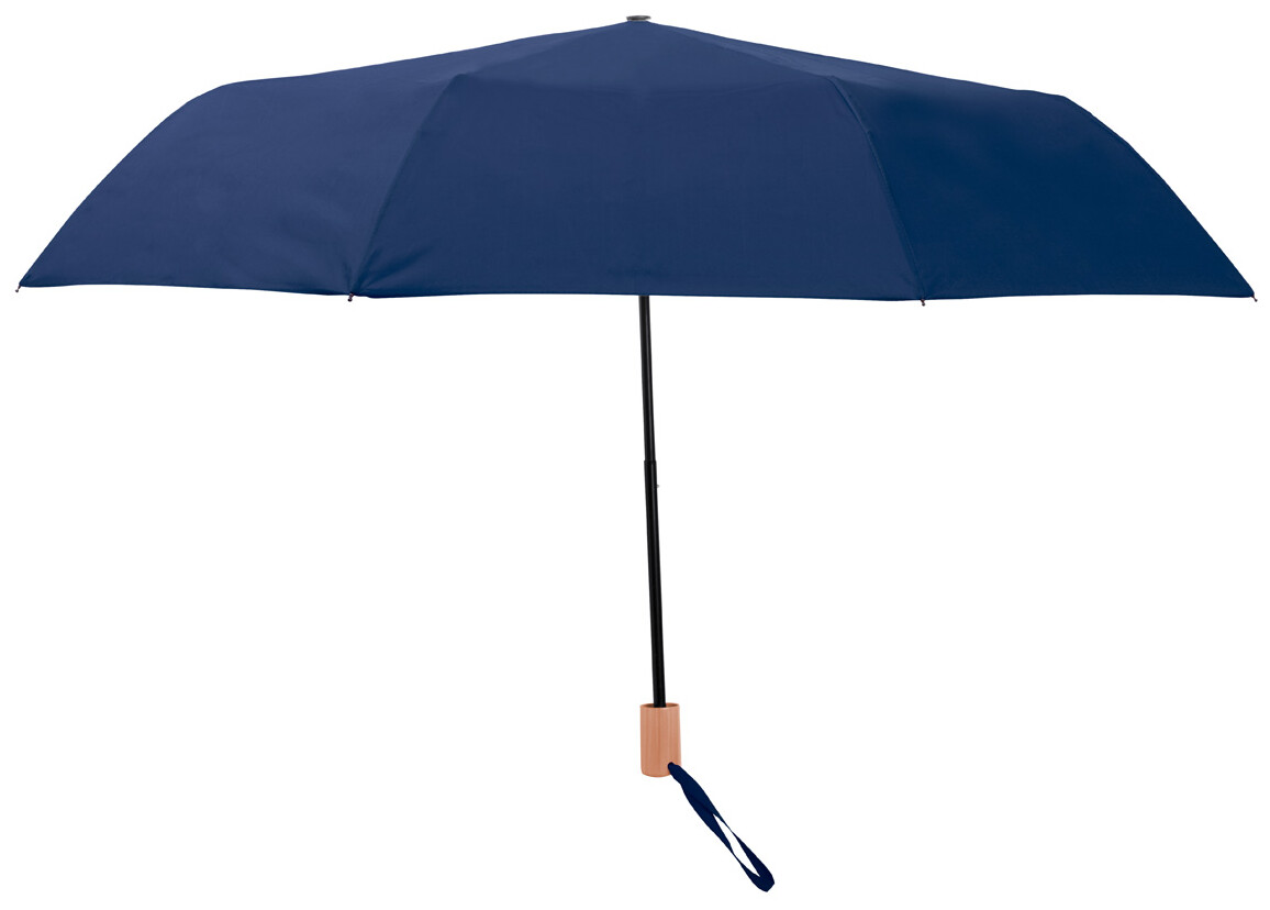 Manuální, větrudodolný skládací deštník s 8 panely ve stejně barevném pouzdře. S kovovým rámem, sklolaminátová žebra a dřevěná rukojeť. 190T RPET pongee, s etiketou s označením RPET.